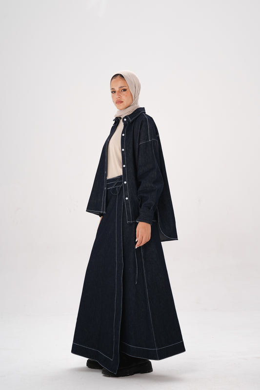Denim wrap skirt set