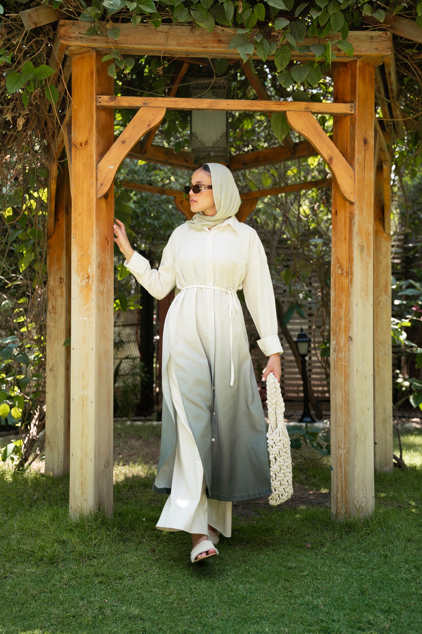 Designed with a flattering longline silhouette and a subtle color fade, this shirt flows creating a soft, dreamy look.