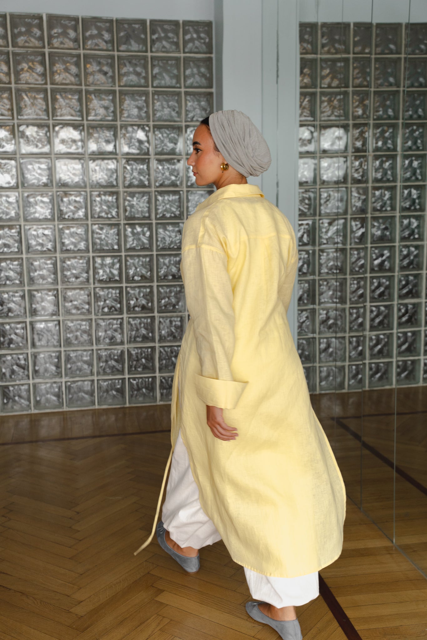 Crafted from 100% pure linen, this shirt is designed for a naturally soft and breathable feel. Designed with side slits for easy movement and a relaxed silhouette, it comes with a matching linen belt to define the waist. Wear it open over wide-leg trousers or buttoned up for a polished, modest look. A timeless layering piece for all seasons.