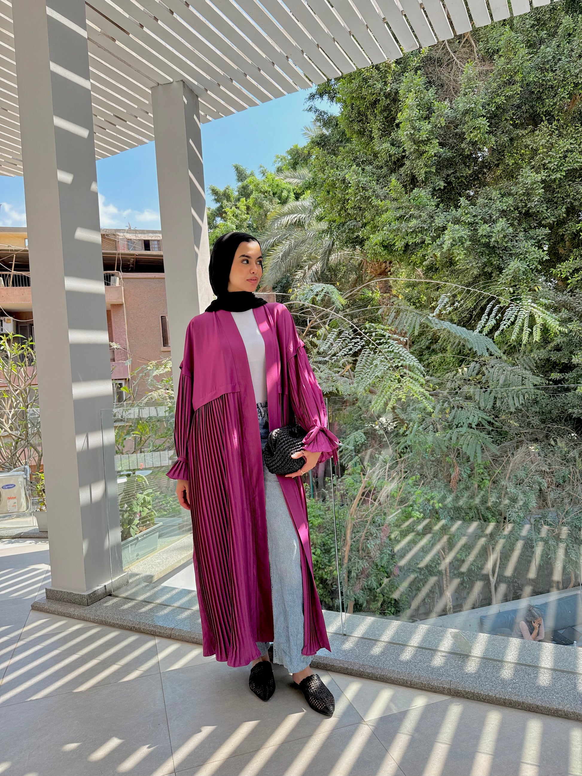 Soft pleated cardigan ( magenta )